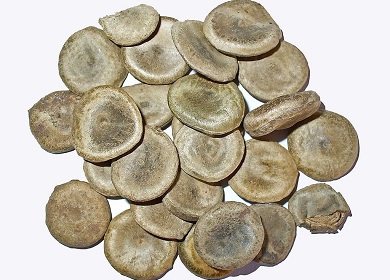 The seeds have the shape of flattened disks densely covered with closely appressed satiny hairs, radiating from the centre of the flattened sides and giving the seeds a characteristic sheen; they are very hard, with a dark grey horny endosperm in which the small embryo is embedded; no odour but a very bitter taste. They must be treated before they are consumed to make them safe. Nux vomica which is used as a supplement can be purchased in a pill or powder form.