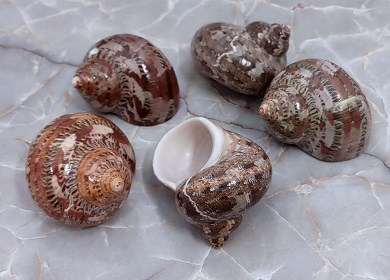 The Tapestry Turban Seashell, scientifically known as Turbo petholatus, is a stunning marine gastropod mollusk admired for its beautiful shell. With its spiral shape and vibrant, tapestry-like patterns, this species is popular among collectors and beachcombers. Found in warm tropical and subtropical waters, the shell is intricate design and vibrant colors make it a sought-after item for shell art and decor. The Tapestry Turban Seashell serves as a captivating representation of the beauty found in marine life.